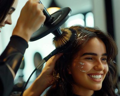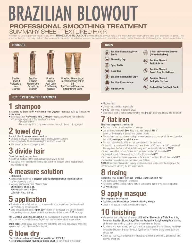 Through the use of a Brazilian Super Nutrient Complex and a proprietary polymer system, the Brazilian Blowout actually improves the condition of the hair by creating a protective protein layer around the hair shaft to eliminate frizz and smooth the cuticle.The end result is smooth, healthy, conditioned hair with radiant shine.
